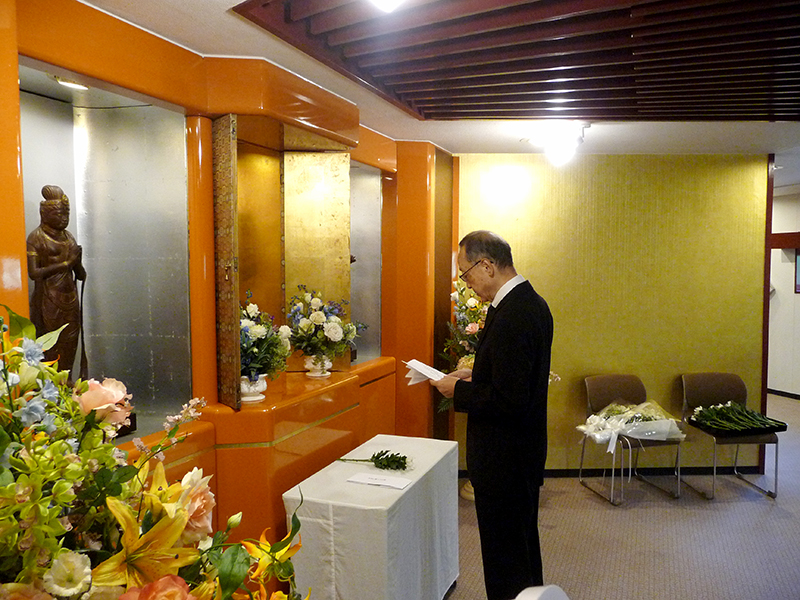 毎年春のお彼岸と秋のお彼岸に合わせて開催しています永代供養慰霊式は、それぞれ下記の日にみころも霊堂祭祀室(9階)において、参拝で来堂されたご遺族もご参列いただき、当奉賛会理事長の「産業殉職者等に捧げる慰霊のことば」を奉上し、参列者拝礼・黙とう、ご来賓の供花などを行い、厳かに御霊をお慰めいたしました。