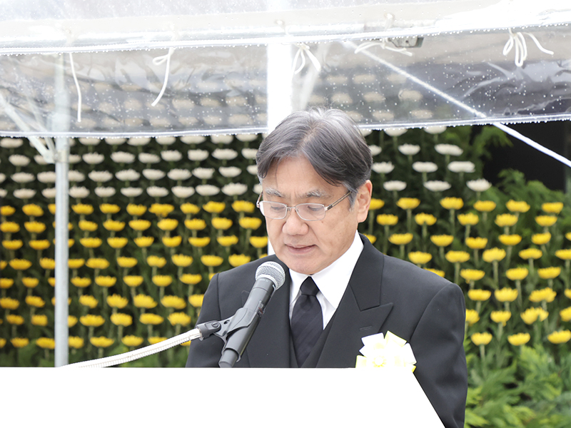 結びに、この霊堂に祀られる御霊が永遠に安らかでおられますとともに、御遺族の皆様の御多幸を心よりお祈りし、慰霊の言葉といたします。