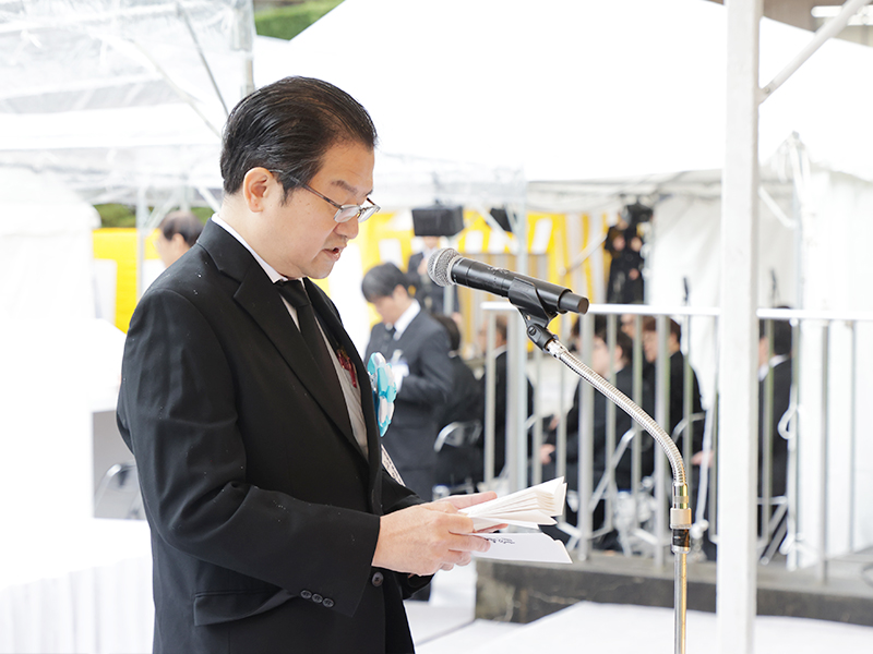 今年は初めて遺族総代表による「追悼の辞」が奉読されました。また、ご公務により欠席された高市早苗内閣総理大臣の慰霊の言葉が代読にて披露されました。